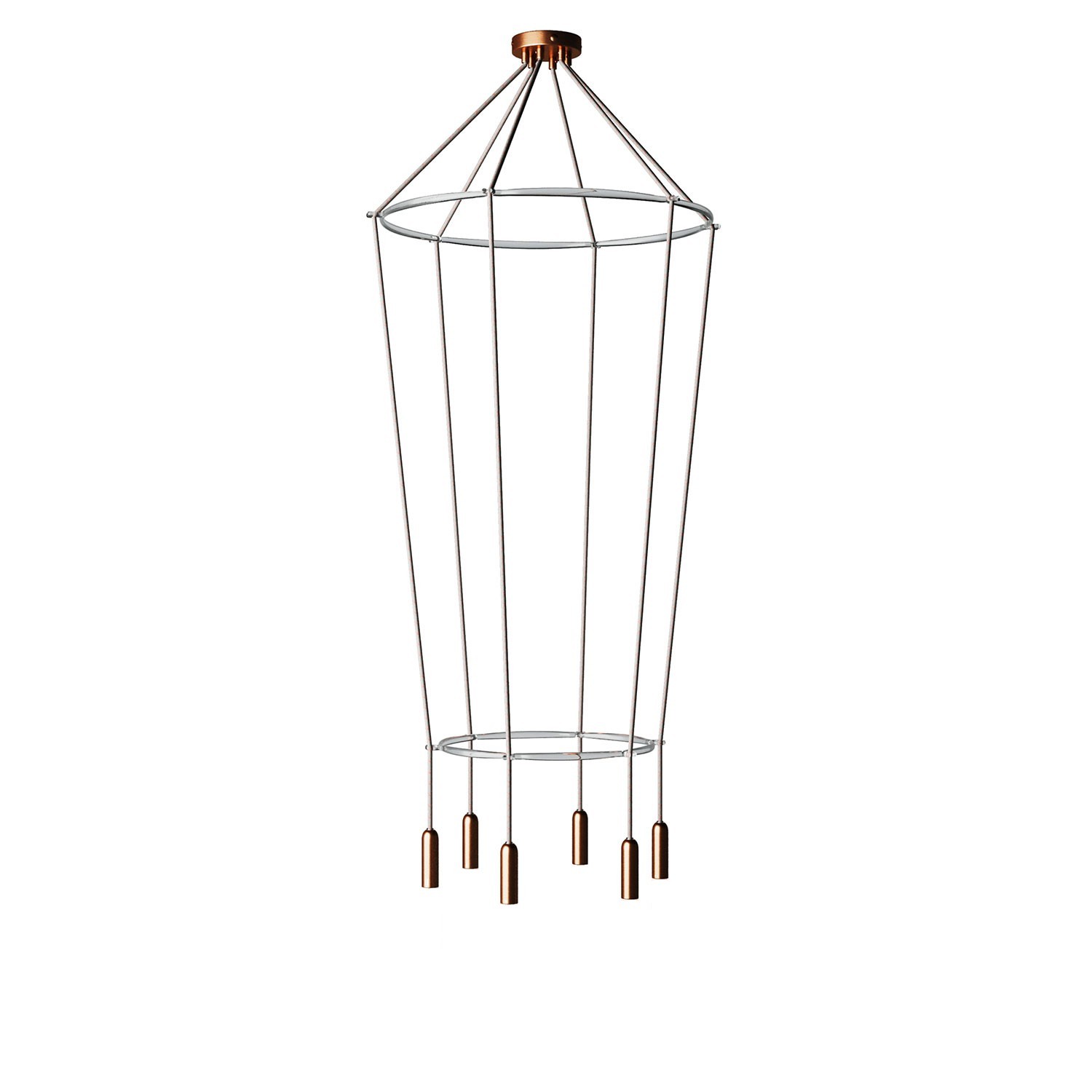 Die ausgefallene Deckenleuchte Cage P-Light mit 6 Aufhängungen sorgt für weit verbreitetes Licht.