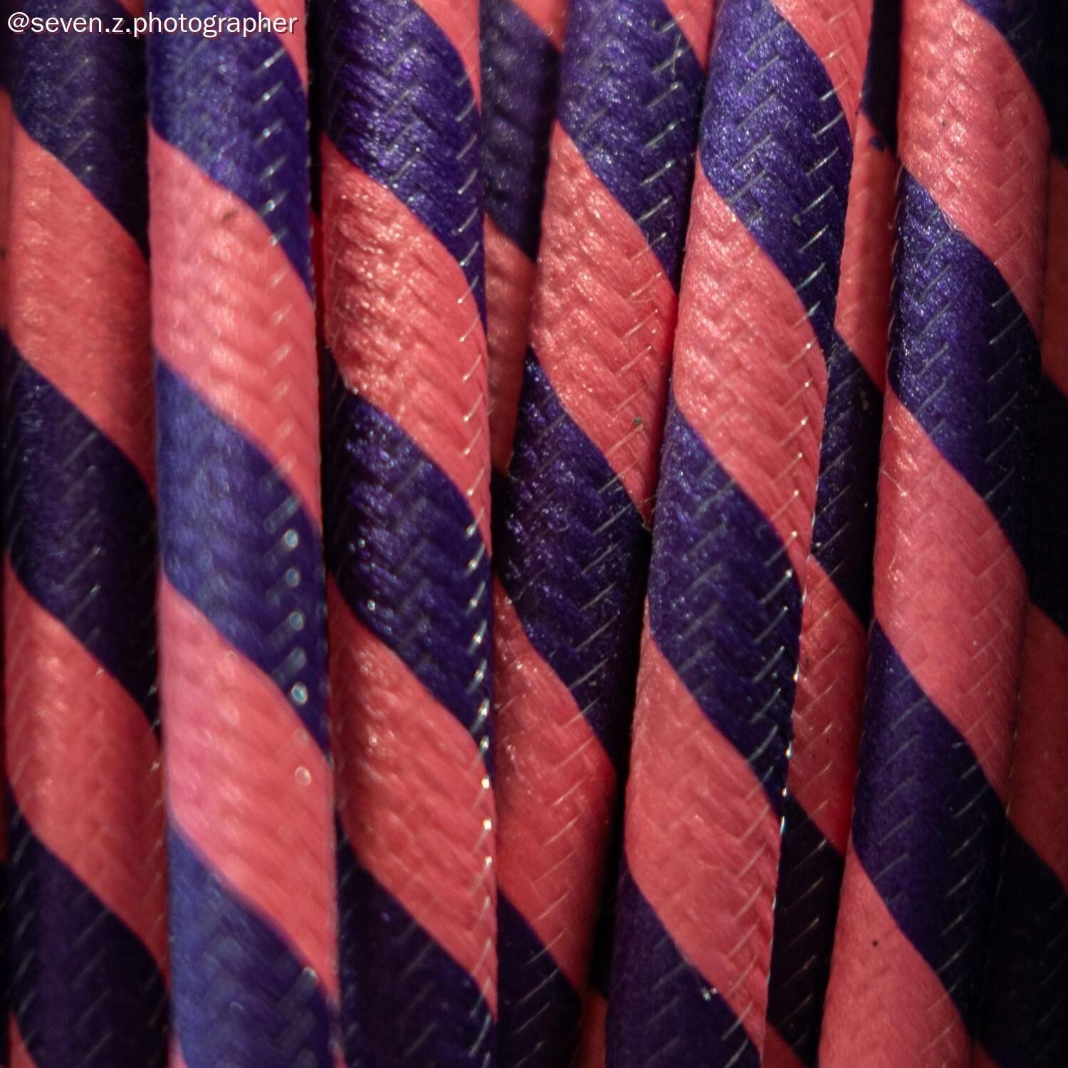 Dieses runde, Vertigo-Textilkabel besticht durch die Lack-Optik mit pink-lila Streifen.