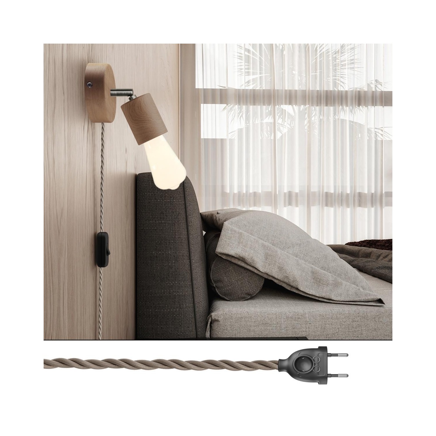 Douille : 1X [KBL0110] Kit douille E27 en bois - Finition: Neutre
