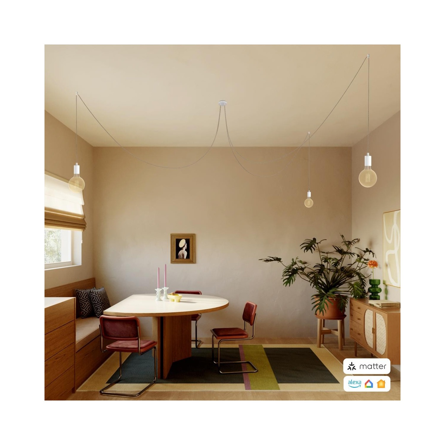 Rosace : 1X [WIFIKRM573FVBO] Kit rosace métallique cylindrique à 3 trous - Serre-cable: Conique, Finition: Blanc mat, Smart Home: Matter ON/OFF