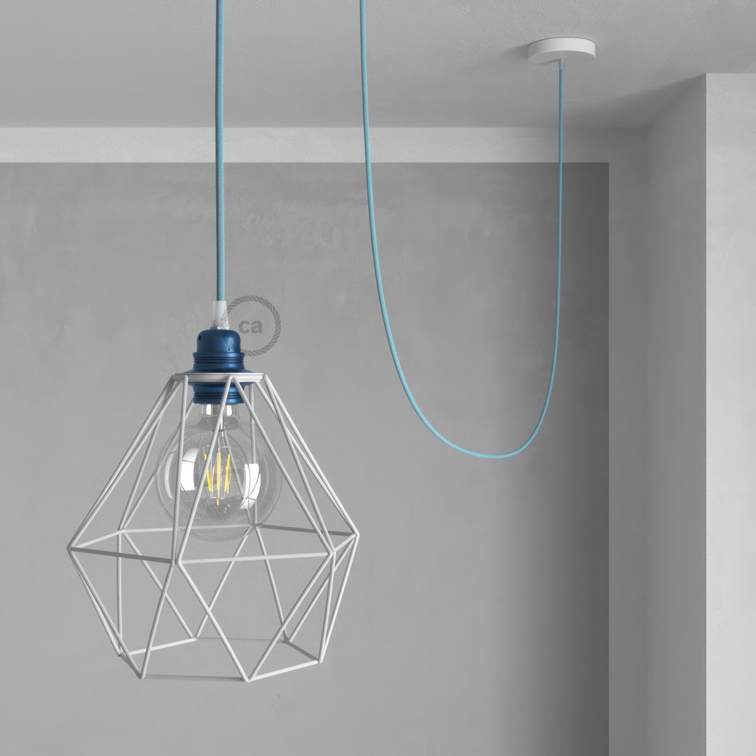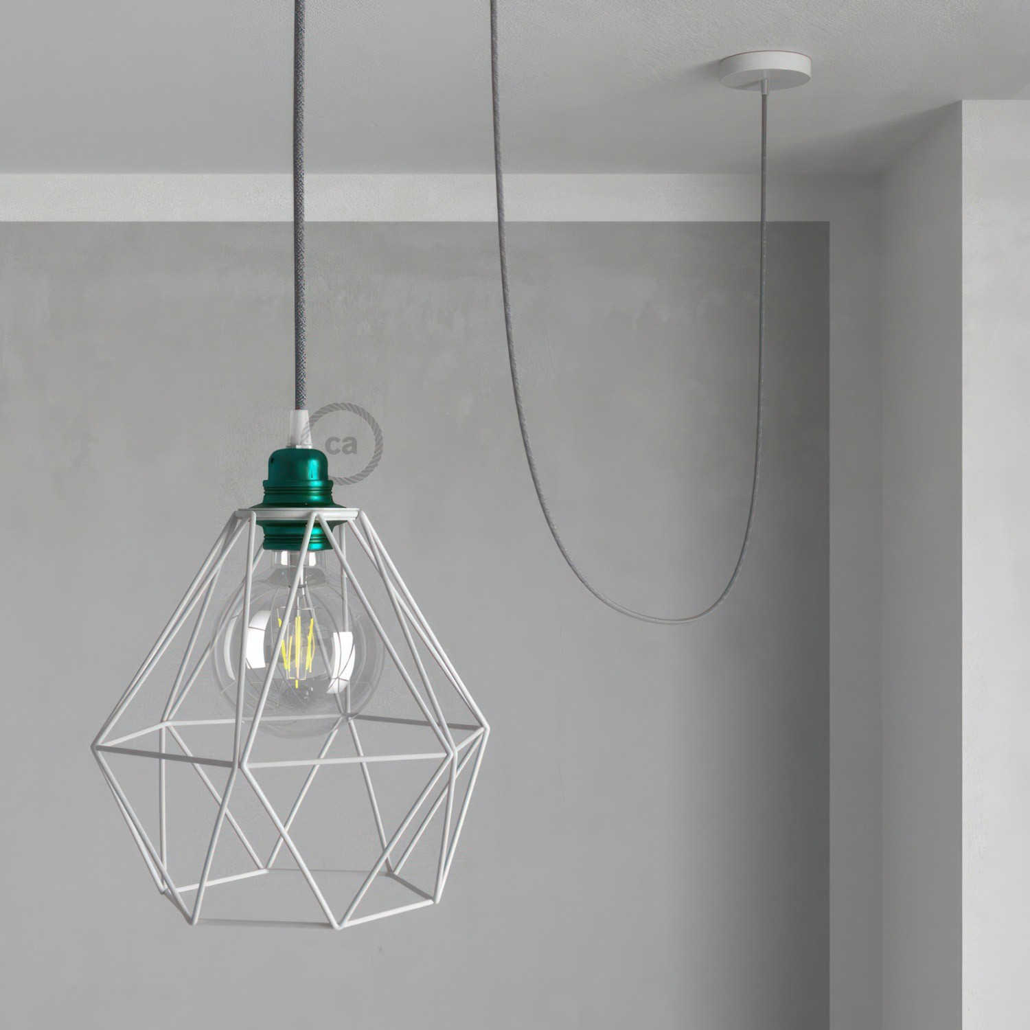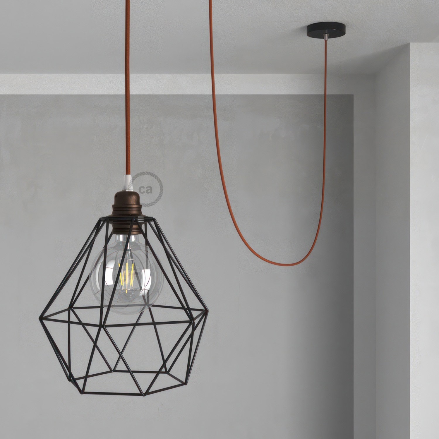 - associez ce kit avec un abat-jour plat Ellepi ou un abat-jour cage Diamond; la douille E27 partiellement visible!