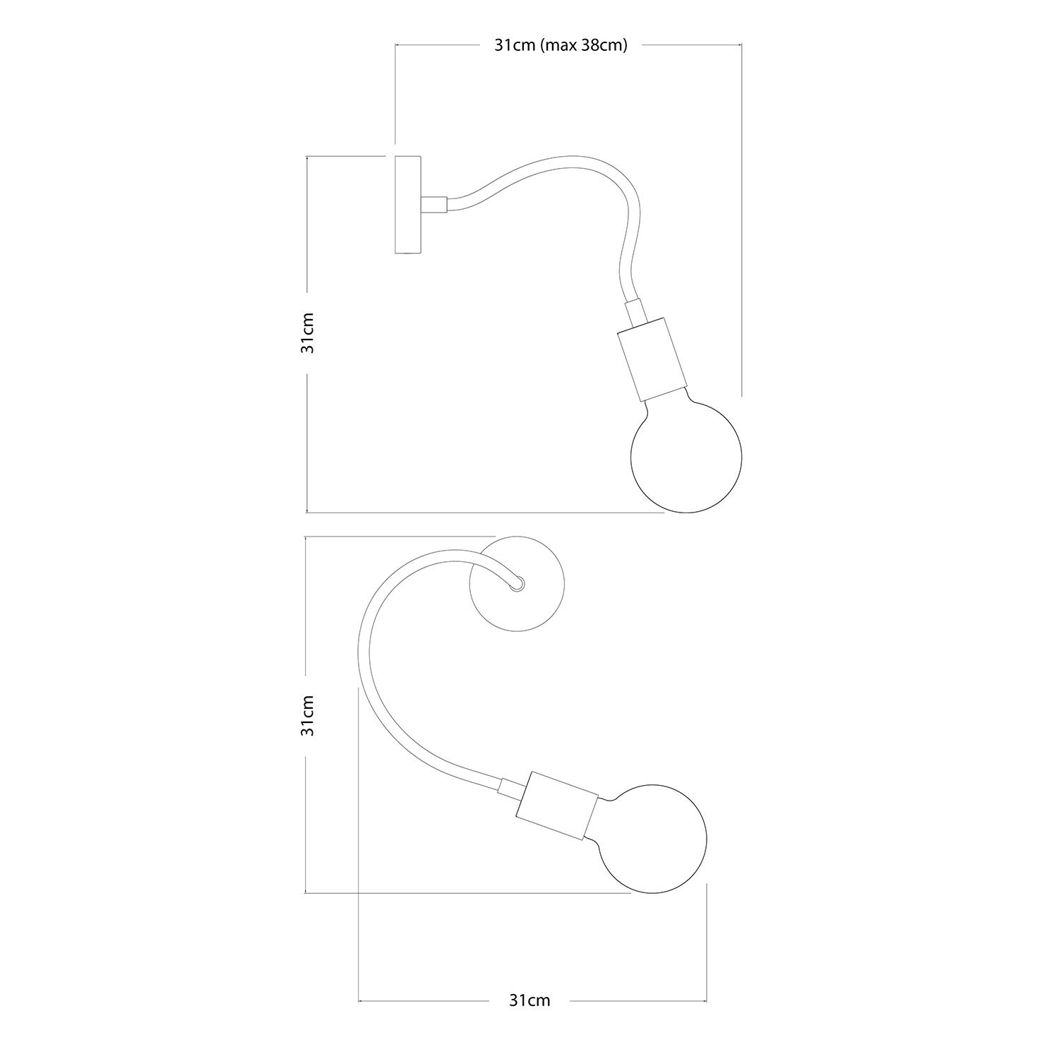 Bianca dalle linee essenziali, titanio per gli ambienti moderni o bronzo per scaldare l'atmosfera? Questa applique con braccio flessibile Flex 30 cm può davvero accontentare ogni stile anche grazie alla lampadina a forma di globo G95.
