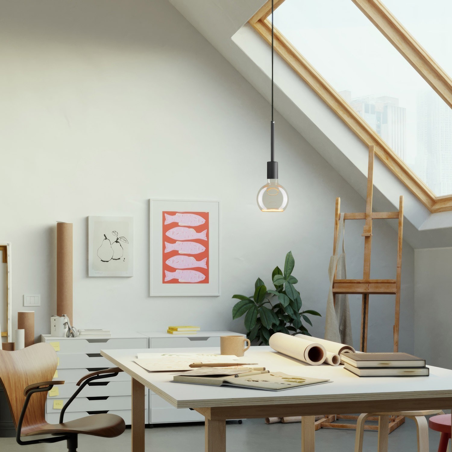 Con una temperatura di 1900K, la sua luce calda e soffusa evoca l’intimità delle candele, creando un’atmosfera rilassata e accogliente, che sembra quasi fluttuare. Perfetta sia da sola che in serie, la G15 si presta a eleganti composizioni in lampade a sospensione o lampadari, tanto in spazi domestici quanto in ambienti commerciali. Il filamento, posizionato lontano dal portalampada, dà alla luce un effetto sospeso, che sembra fluttuare.